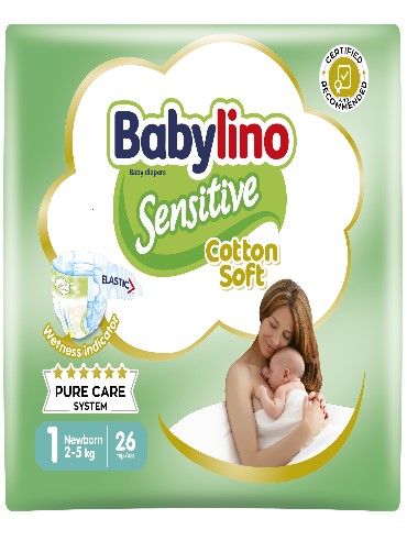 Πάνες Babylino Sensitive Cotton Soft Pack No1 (2-5Kg) 26τεμ
