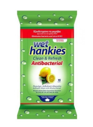 Wet Hankies Antibacterial Lemon Αντιβακτηριδιακά Μαντηλάκια Χεριών 15τεμ