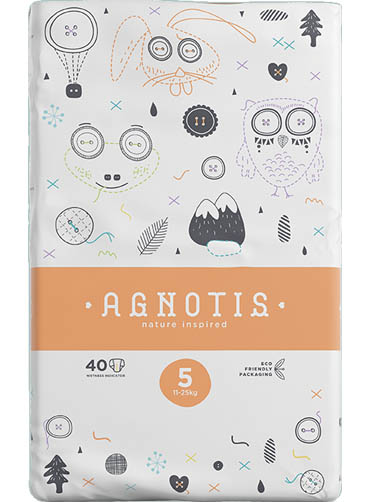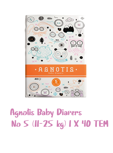 Οι Agnotis baby diapers είναι βρεφικές πάνες κατασκευασμένες από υποαλλεργικά υλικά και κατάλληλες για ευαίσθητες επιδερμίδες. Περιέχουν εσωτερικό στρώμα βαμβακερής υφής που επιτρέπει στην επιδερμίδα να αναπνέει, ισχυρός απορροφητικός πυρήνας που κρατάει την υγρασία έως και για 12 ώρες και παράλληλα ελαστικά πλαϊνα "drywalls" για εξαιρετική εφαρμογή και αποφυγή διαρροών. Η λωρίδα ένδειξης υγρασίας αλλάζει χρώμα όταν η πάνα χρειάζεται αλλαγή.=