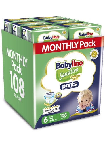 Babylino Monthly Pack Pants Cotton Soft Unisex No6 Extra Large (13-18kg) Πάνες-Βρακάκι 108τμχ
