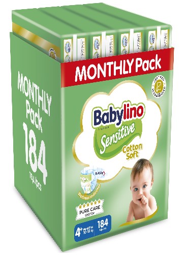 Πάνες Babylino Sensitive Monthly Pack No4+ (10-15Kg) 184τεμ