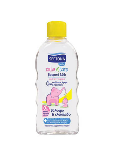 Το βρεφικό λάδι SEPTONA calm n’ care με βάλσαμο και ελαιόλαδο, είναι ιδανικό για την καθημερινή φροντίδα της ευαίσθητης βρεφικής επιδερμίδας, από την 1η μέρα.