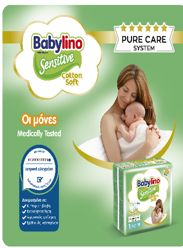 Οι βρεφικές πάνες Babylino Sensitive Cotton Soft είναι σχεδιασμένες με βάση το Σύστημα Αγνής Φροντίδας Pure Care System, που απεικονίζει όλο το Σύστημα ελέγχων, πιστοποιήσεων και αυστηρών διαδικασιών διασφάλισης ποιότητας πίσω από την παραγωγή τους.