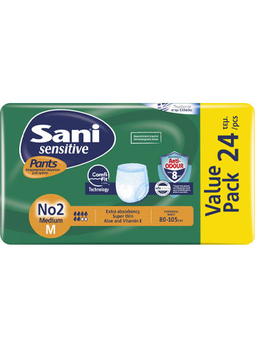 Με ειδική τεχνολογία Odour Control στον πυρήνα, για αποδεδειγμένο περιορισμό των οσμών για έως και 8 ώρες (σημαντική μείωση των οσμών έως και 8 ώρες επιστημονικά αποδεδειγμένη μέσω in-use tests των εργαστηρίων Olfasense). Επιπλέον, χάρη στην τεχνολογία Comfi-Fit εξασφαλίζουν ακόμα μεγαλύτερη άνεση σε κάθε κίνηση και άριστη εφαρμογή στο σώμα. Με αποδεδειγμένη φιλικότητα στο δέρμα αφού διαθέτουν διεθνή πιστοποίηση Oeko-Tex® Standard 100 για απουσία βλαβερών ουσιών. Με υγιεινό υφασμάτινο κάλυμμα, αλόη και βιταμίνη Ε για Sensitive προστασία στο δέρμα. Ενδείκνυνται για περιπτώσεις μεσαίας και βαριάς ακράτειας. Δερματολογικά ελεγμένα. Περιέχουν πυρήνα με ίνες φυτικής προέλευσης, με πιστοποίηση FSC®. Σε συσκευασίες 100% ανακυκλώσιμες και από 30% ανακυκλωμένο υλικό. Παράγονται στην Ελλάδα. Για διαστάσεις περιφέρειας μέσης: 80-120cm. Σε συσκευασία των 96 τεμαχίων.